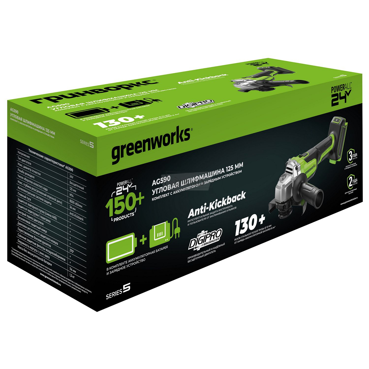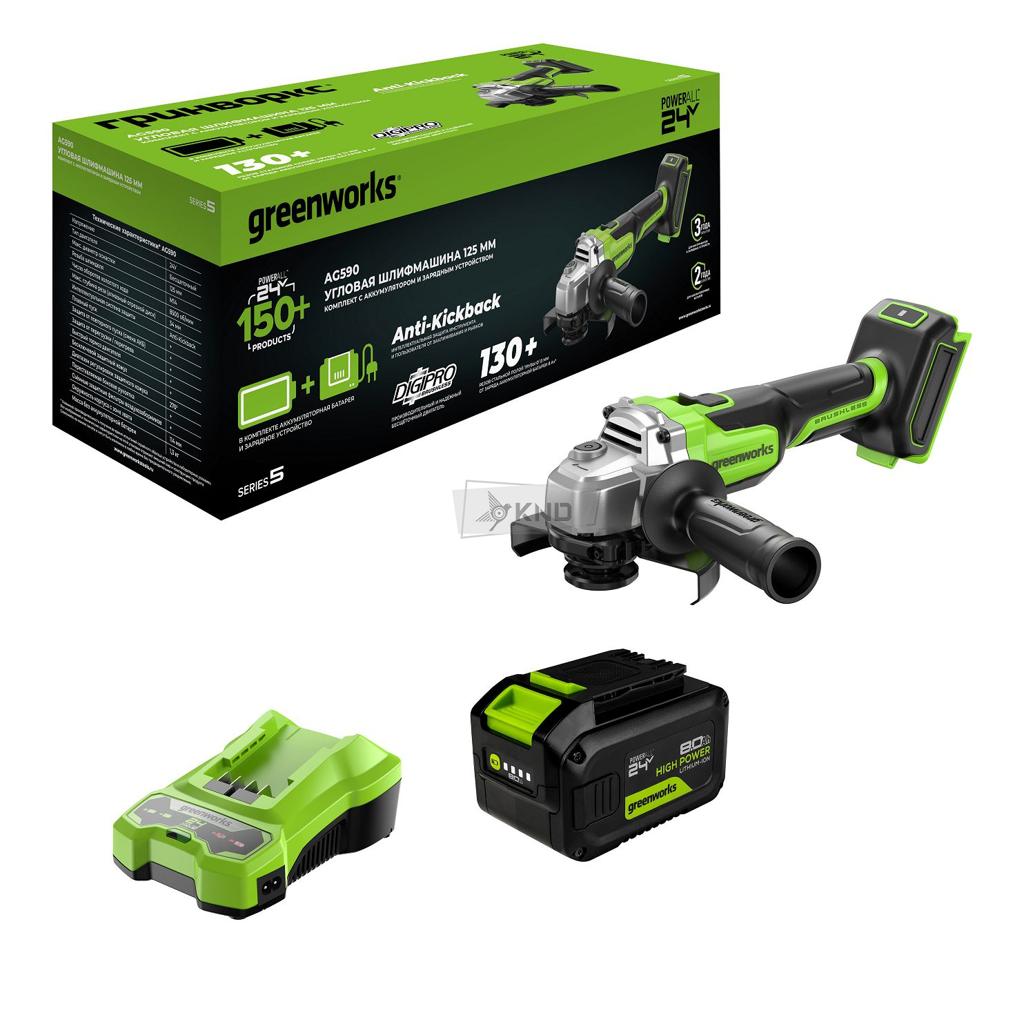 Аккумуляторная угловая шлифмашина Greenworks AG590 с АКБ 8 Ач и ЗУ