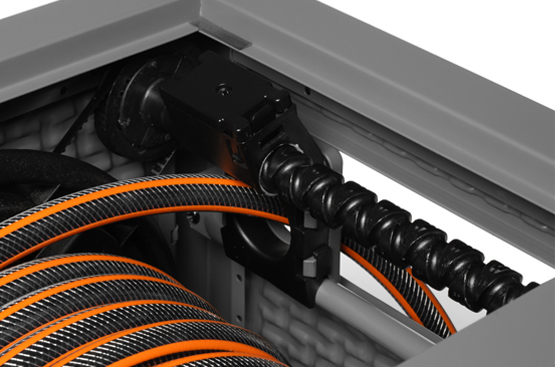 Система автоматической укладки шланга накручивает его на барабан катушки равномерно без заломов и перекручивания.