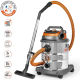В комплектацию пылесоса входит: HEPA фильтр; Двухслойный огнеупорный предварительный фильтр; Поролоновый фильтр; Металлическая удлинительная трубка (от 490 до 840 мм); Антистатический всасывающий шланг (длина 3 м); Огнеупорный шланг (длинна 1,5 м) Всасывающий шланг с алюминиевой обмоткой (длина 1,5 м); Насадки для различных работ: алюминиевая трубка и насадка, щелевая насадка, щетка для сухой и влажной уборки.