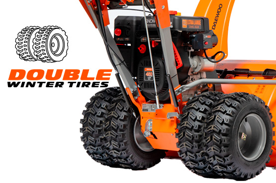 Двойные колеса с протектором специальной формы X‑TRACK обеспечивают наилучшее сцепление с заснеженной и обледенелой поверхностью. Сдвоенная конструкция увеличивает общую ширину колес и гарантирует высокую проходимость даже при высоком снежном покрове.